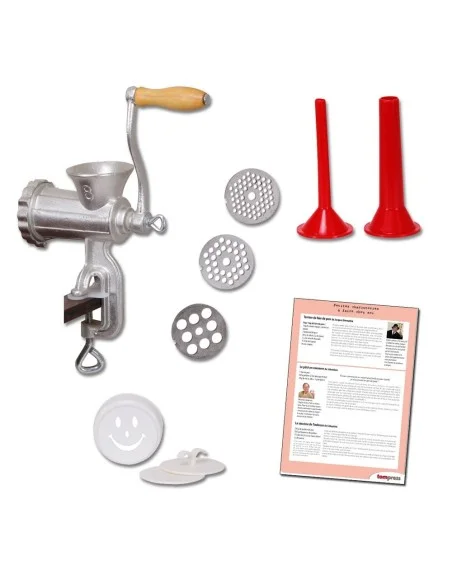 - 2 grids with 6 and 12 mm holes to make mincemeat for pâtés and sausages.