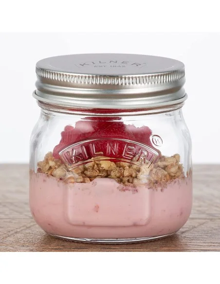 - Un bocal de 250 mL pour transporter votre yaourt partout, accompagné de flocons d'avoines, de fruits frais, de miel, de gelée ou de confiture.